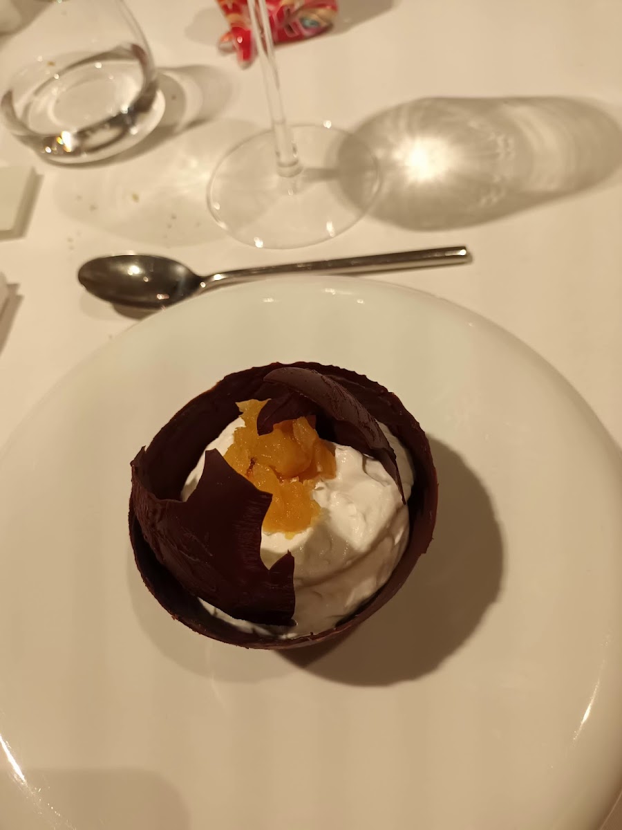 We had a tasting menu and I was very happy as all the dishes I fancied on the menu were part of the surprise menu! It already started with an amazing greeting from chef, a parmesan ball with sriracha, not something I would naturally combine but great taste. Followed by scallops and pancetta, then we had ‘noodles’ of squid, an amazing fish dish and a dessert of coconut cream with pineapple. All accompanied by wine for a very fair price! (55 euro for the 4 course tasting menu and 25 euro for the wine accompaniment! It was a great evening with a lot of tasting surprises!